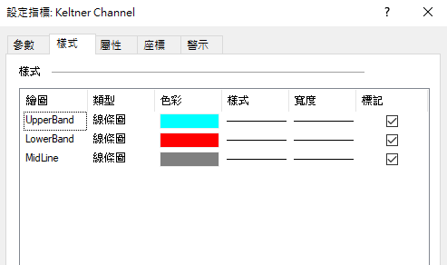 凱勒通道 KeltnerChannel 是由 Chester W. Keltner 發表,主要從移動平均線衍變出來的技術指標。在移動平均線,往上和往下各加減一定的數值,由三條線組合而成。
